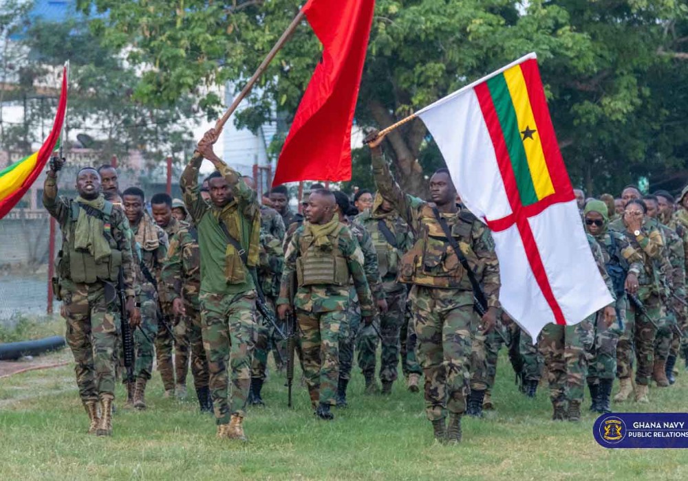 Participants included personnel from the Eastern Naval Command of the Ghana Navy, 1 Infantry Battalion of the Ghana Army, the Ghana Police Service, the Ghana Immigration Service, the Ghana National Fire Service, and the Customs Division of the Ghana Revenue Authority (GRA). The eight-kilometre march commenced at Community 8 No. 3 School, traversed major streets within Tema, and culminated at the Nii Adjei Kraku II Sports Complex in Tema, New Town, accompanied by morale-boosting chants that reflected unity, readiness, and resolve.