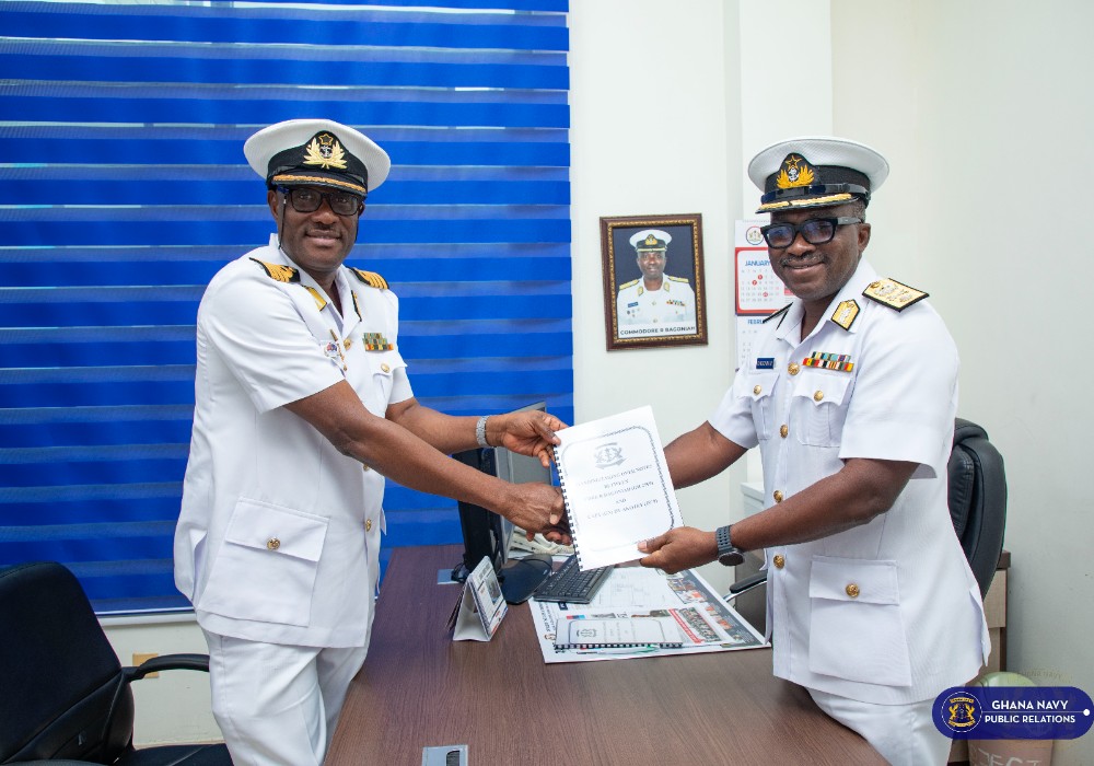 Commodore Roger Bagoniah officially handed over the responsibilities of Deputy Chief Staff Officer (Naval Policy and Plans) to Naval Captain Douglas Akotey during a brief ceremony at the Naval Headquarters on Tuesday, 3 February 2026.