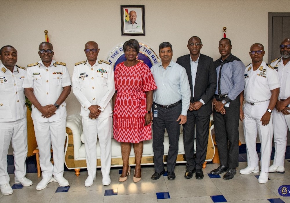 A delegation led by the Deputy Managing Director (DMD), Mrs Cynthia Lumor, Tullow Ghana Limited, paid a courtesy visit to the Chief of the Naval Staff (CNS), Rear Admiral Godwin Livinus Bessing, at the Naval Headquarters on Tuesday, 7 October 2025.